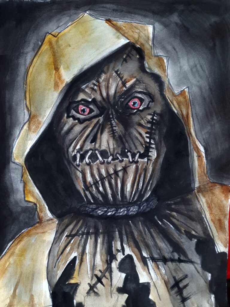 Finished Cancer portrait number 7. This is from when I was in hospital and had had my operation but was in under observation and wearing my fabulous cat pyjamas, which are black with white outlines of cats on them, you cant really tell in this painting as they are quite subtle!